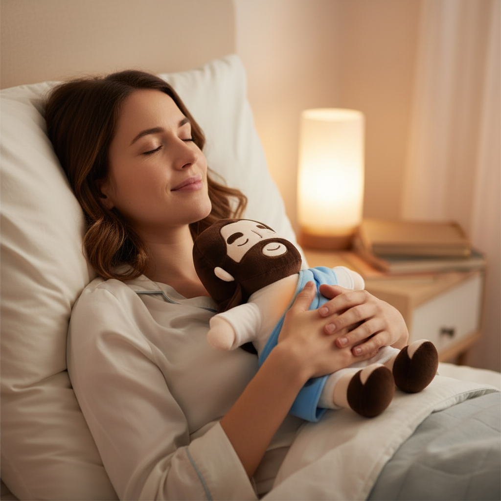 Cette peluche unique combine technologie apaisante et réconfort spirituel pour dissiper votre stress en quelques respirations seulement.